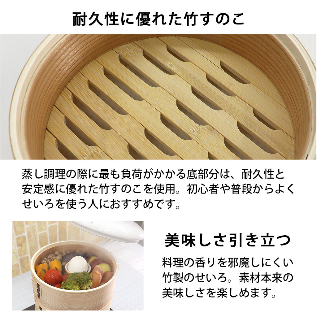 ※せいろは天然素材のため、使用回数や使用状況に関わらず、隙間、ヒビ、割れ、ささくれなどがありますが、いずれも天然素材製品の特性としてご理解ください。返品・交換はお受けすることはできませんので、予めご了承ください。